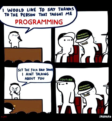 Professors don’t tend to be very good programmers themselves, because they’re often tied up in the science aspect of “computer science” or, of course, in teaching.