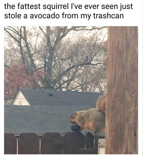 Squirrel could be fat because OOP keeps putting whole avocados in their trash…