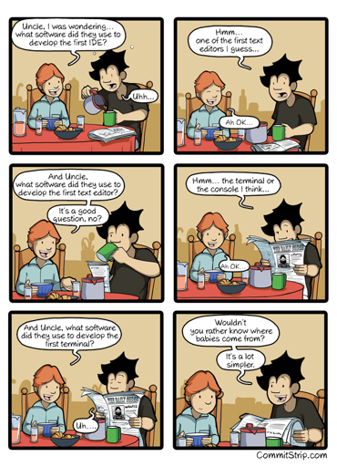 alexei_1917 [mirror/your pronouns]@hexbear.net to Programmer Humor@lemmy.mlEnglish · 2 months ago"In the beginning, there was the terminal."imagemessage-square12fedilinkarrow-up186arrow-down12