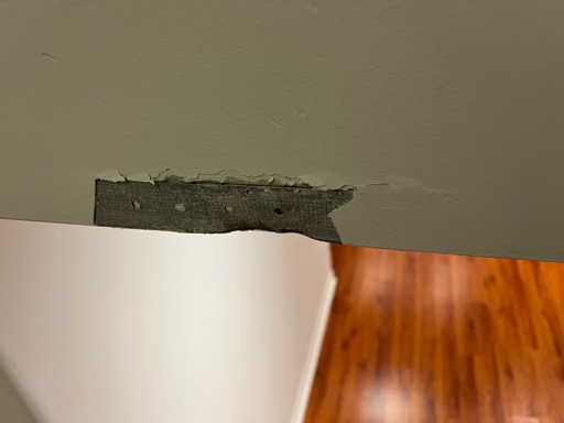 I wrecked the ceiling/ wall bringing down a sofa. I’m a new home owner so not sure how to fix this. I have the paint since we repainted everything.