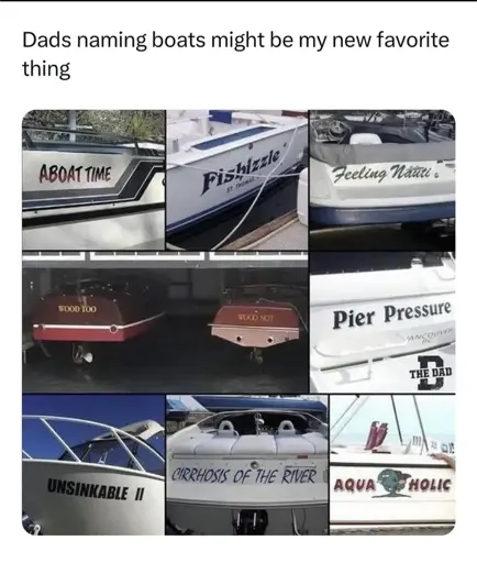 arrow-up12arrow-down1imageDads naming boats might be my new favourite thingslrpnk.netDeebster@lemmy.ml to Dad Jokes@lemmy.worldEnglish · 2 years agomessage-square2fedilinkfile-text