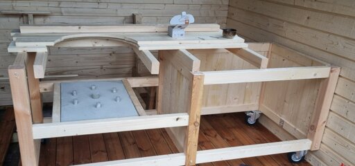 The far right has no table top, there i’m gonna place a concrete slab with a castiron grid. Under it will be space for brikettes and my dutch oven(s)/skillets can be placed on the cast iron grid