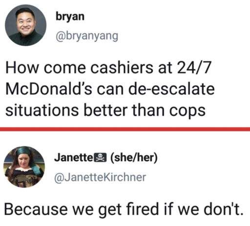 It’s almost like deescalation should be first priority if protecting the people is priority.