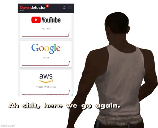 CocaineShrimp@sh.itjust.works to Programmer Humor@lemmy.ml · 1 day agoAnyone else having issues with YouTube right now?imagemessage-square25fedilinkarrow-up1178arrow-down13