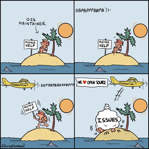 Another big problem IMO is the subset of users that start attacking maintainers and volunteers because their “free app stopped working” etc. I see that a lot, mostly in the arduino community, but especially egregiously on the Zabbix project - I imagine a lot of those users are companies who aren’t even paying/donating to the project
