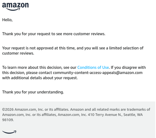 I try to review everything positive or negative because I rely on reviews. I’ve been banned from reviewing, and I pay for prime. Wtf. They say I’ve done suspicious activity or violated review terms, but won’t let me see previous reviews, and won’t let me appeal. Bull crap.