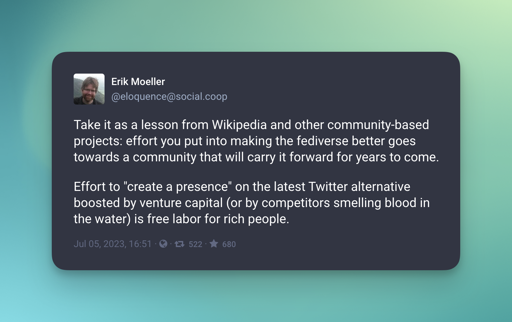 arrow-up16arrow-down1imageBuilding the fediverse is an investment in us and the open web.lemmy.worldHiramFromTheChi@lemmy.world to Fediverse@lemmy.worldEnglish · 2 years agomessage-square3fedilinkfile-text