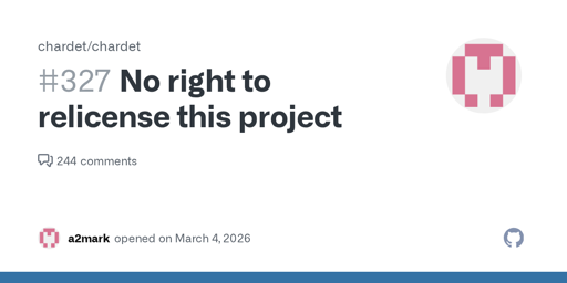 Blanchard doesn’t say that he never looked at the existing code; on the contrary, he has been the maintainer (and primary contributor) to it for over a decade so he is probably the person who is most familiar with the pre-Claude version’s implementation details. Rather, he says that he didn’t prompt Claude with the source code while reimplementing it. iirc he does not acknowledge that it is extremely likely that multiple prior versions of it were included in Claude’s training corpus (which is non-public, so this can only be conclusively verified easily by Anthropic).